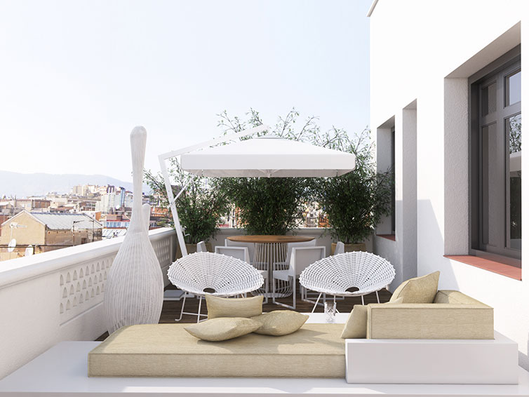 La rehabilitación de la estructura original ha sido confiada al estudio de arquitectura barcelonés UDA. Su magistral intervención ha permitido devolver todo su encanto y autenticidad a este edificio de alto standing. Así, la fachada exterior del inmueble se ha reformado en su totalidad. Las persianas se han sustituido completamente y balcones, barandillas, techumbres y terrazas han sido perfectamente restaurados. Por último, el conjunto de las instalaciones técnicas (electricidad, gas, teléfono) y sanitarias (fontanería) ha sido sustituido por unos nuevos equipos, de conformidad con la normativa vigente. Este magnífico resultado es un fiel y respetuoso homenaje al patrimonio arquitectónico barcelonés.