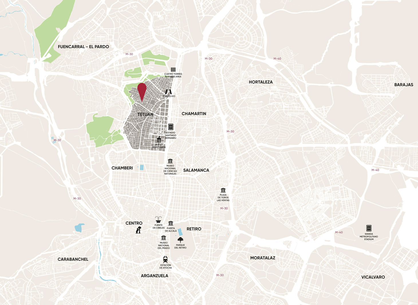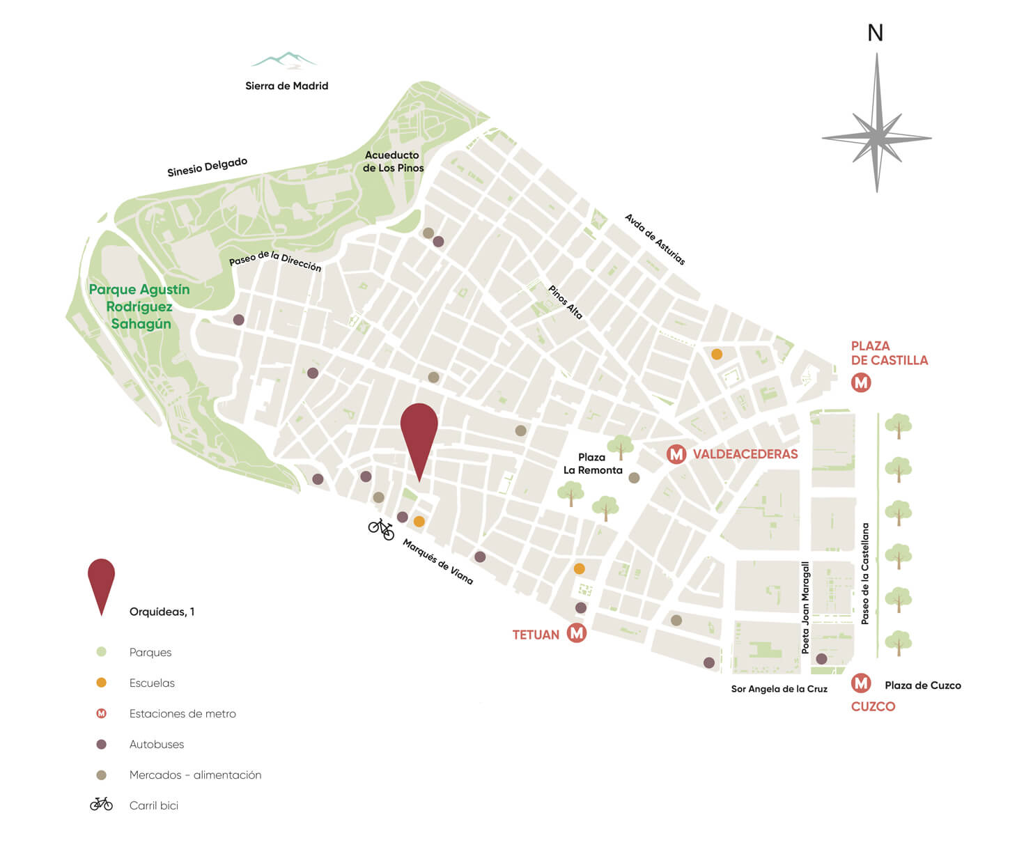 En este enclave estratégico de la ciudad, que late entre los ejes de Marqués de Viana y Bravo Murillo, verdadero corazón del comercio tradicional y de proximidad de Tetuán, y que a la vez se sitúa entre la principal zona de negocios y el pulmón verde de sus parques, EMERIGE presenta Orchidea, un nuevo hogar para vivir y sentir Madrid privilegiadamente.