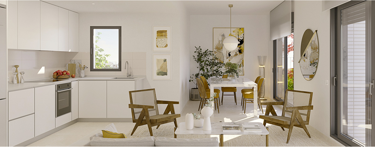 El proyecto de arquitectura, de muy alta categoría se confió al estudio VIRAI ARQUITECTOS, que imaginó el conjunto de viviendas como verdaderos espacios de vida. Todas las viviendas de la promoción son exteriores y gran parte de ellas tiene ventilación cruzada. Las viviendas constande un amplio salón-comedor con cocina integrada en la mayoría de los casos, dormitorio principal con baño privado, y uno, dos o tres dormitorios secundarios con baño separado.